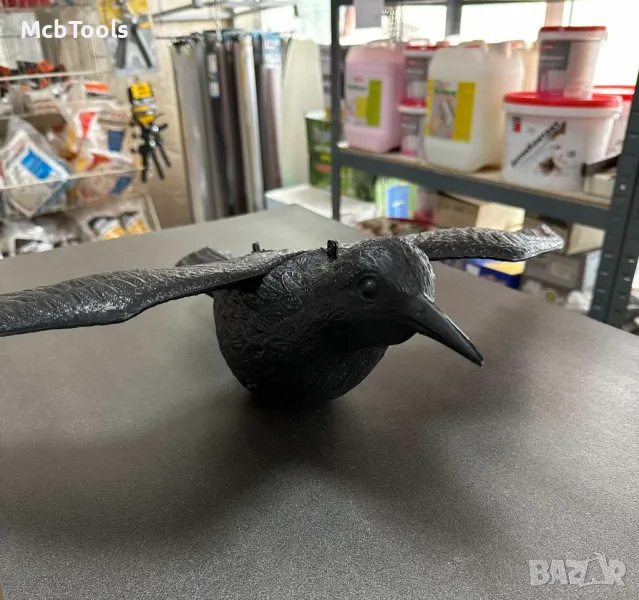 Плашило за птици във формата на гарван в естествен размер е ефективен за прогонване на ГЪЛЪБИ, КОСОВЕ, СИНИГЕРИ и други дребни птици.