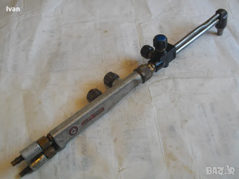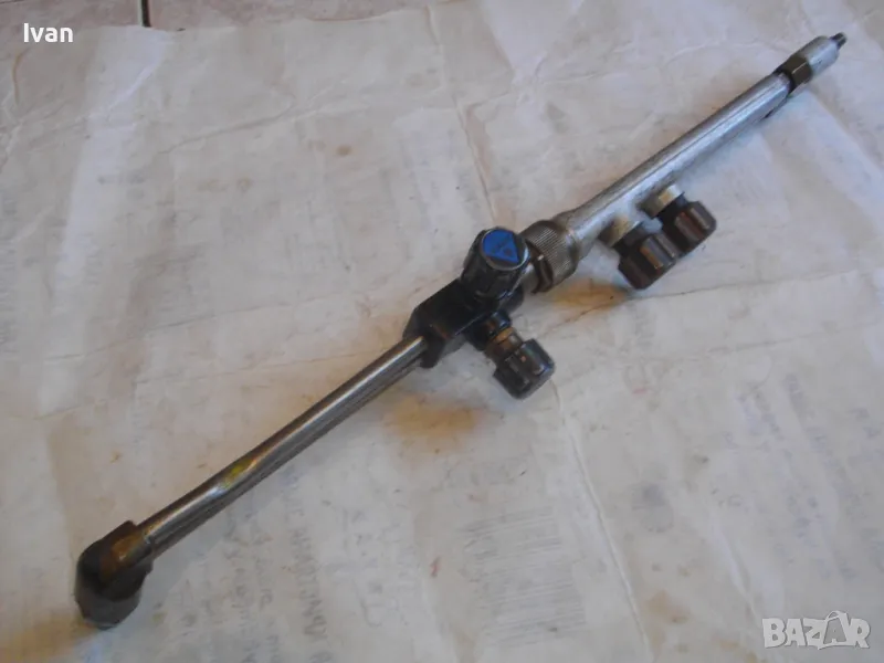 Описание на резак 555 мм за оксижен газо-кислородно-ацетиленово рязане / заваряване/ спояване - MESSER GRIESHEIM STAR 2000 - цялостна дължина 555 мм с двата адаптера/бързи връзки отзад. 4 спирателни крана/въртоци. Алуминиев изцяло.
