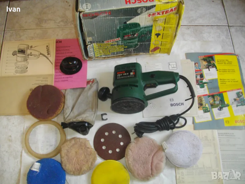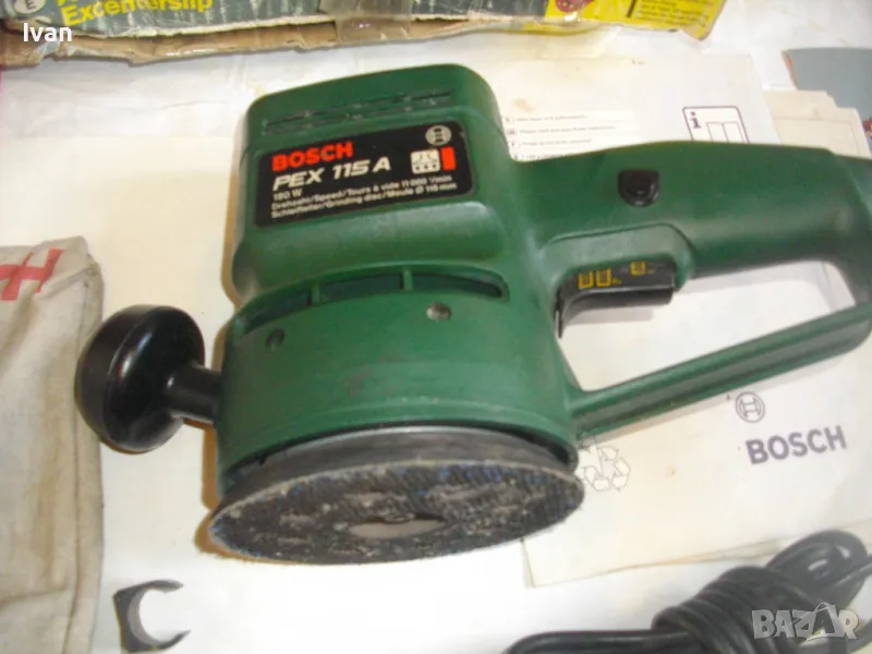 шлайфмашина/кръгъл ексцентър вибро шлайф за полиране и шлайфане - оригиналното швейцарско производство от преди години Bosch пълн комплект професионален модел pex 115 A в перфектно състояние и с включени няколко диска и ueéjd в цената.