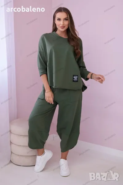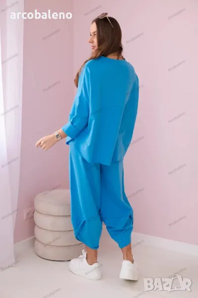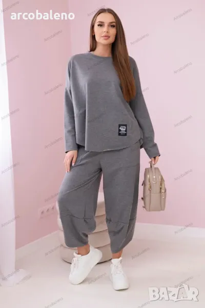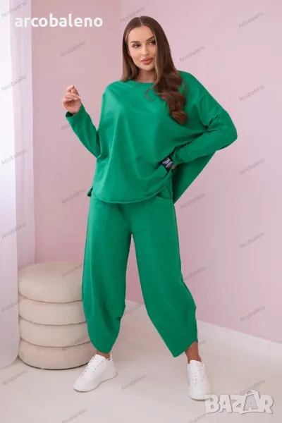 Италианският комплект е съчетание от елегантност и комфорт, идеален за много поводи. Тази материя е не само мека и приятна на допир, но и изглежда красива. Суичърът е перфектна дреха както за ежедневието, така и за специални поводи. Можете да го носите самостоятелно или да го комбинирате с друга дреха, създавайки изключително стилен тоалет. Панталоните са перфектното допълнение към комплекта. Свободната им кройка позволява свобода на движение, което ги прави не само стилни, но и много удобни. При избора на панталон вие избирате комфорт и елегантност в едно. Италианският комплект е отличен избор за тези, които ценят високото качество и уникалния стил. Независимо дали ще се срещнете с приятели, ще работите или ще излезете вечер, този комплект със сигурност ще ви накара да се откроите от тълпата. Размерът е универсален и става за жени, носещи размер S, M или L.
