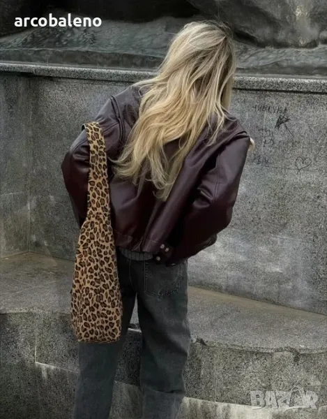 Дамско ново ежедневно едноцветно кожено яке с квадратна яка, 2цвята