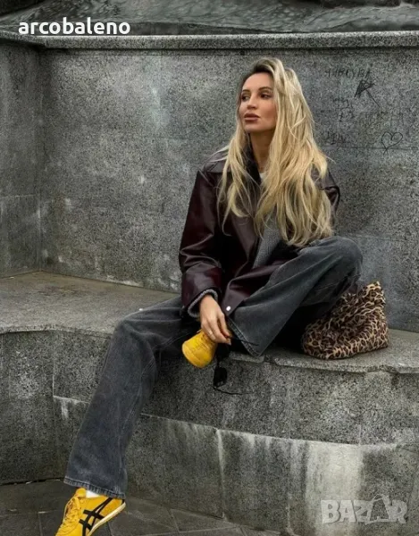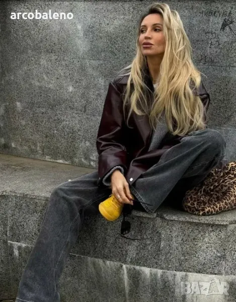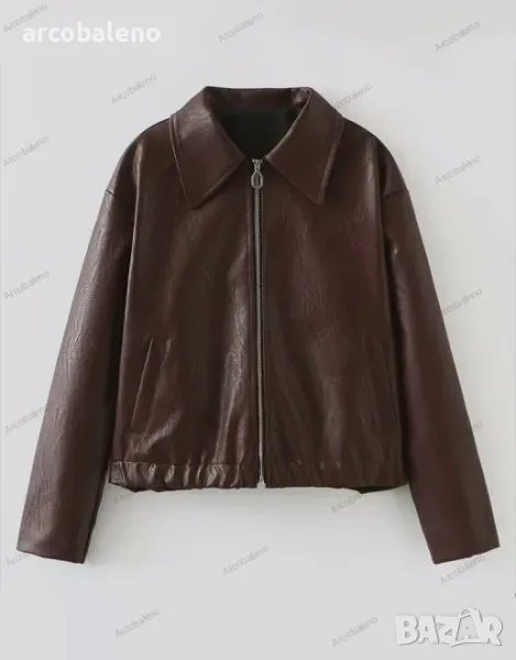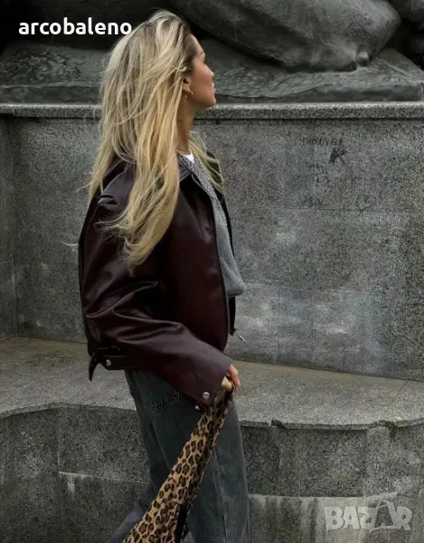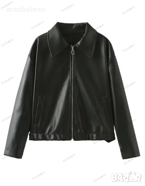 Дамско ново ежедневно едноцветно кожено яке с квадратна яка