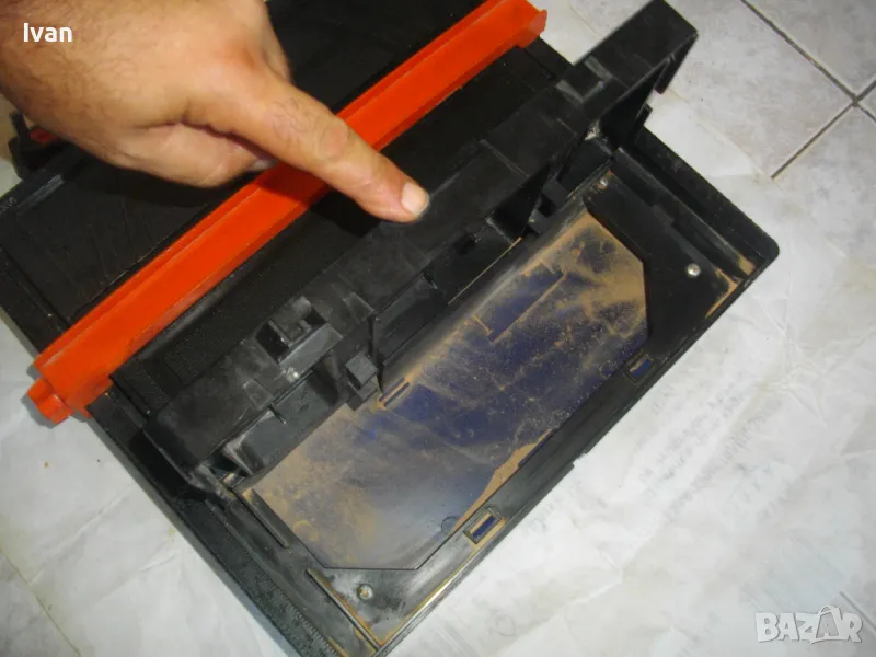 Машината е с оригиналният си пластмасов ограничителен линеал ширина. Разграфен линеал от двете страни по ширина на плота - в инчове и в мм - до 130 и до 200. Плота е от едната страна с ваничка за вода за водно охлаждане на диска.