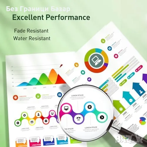 Цветове: Ярки цветове и остър текст с пигментни мастила