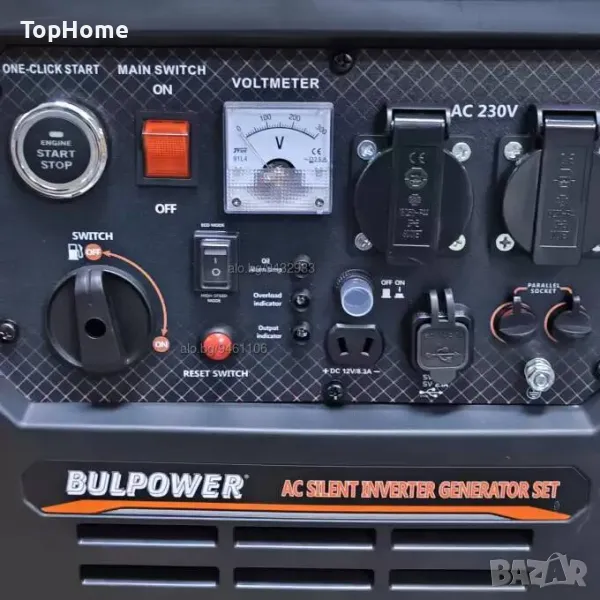 Инверторен тип генератор: с вграден инвертор с изходяща чиста, точна, правилна и постоянна синусоида, за захранване на всякаква чувствителна монофазна техника 220-240V