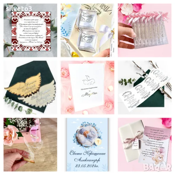 ✨ Подаръци за Кръстници и Гости – Изразете благодарност към вашите близки с персонализирани подаръци, които ще останат като скъп спомен. Разполагаме с разнообразни стилове и модели, за да задоволим всеки вкус.