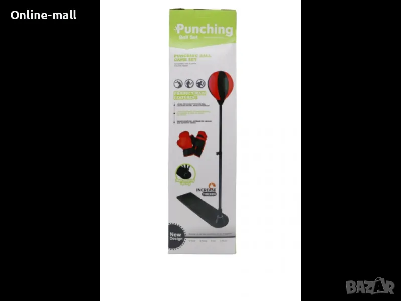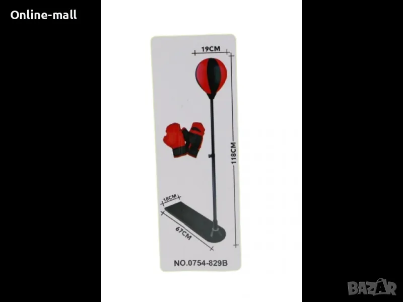 * боксова круша, стойка, боксови ръкавици, помпа и ключ.