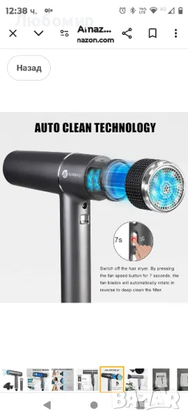 【Функция за автоматично почистване+100% безрисково пазаруване】: изключете сешоара, натиснете бутона за скорост на вятъра за седем секунди, вентилаторът се върти с висока скорост, за да постигне автоматично почистване.