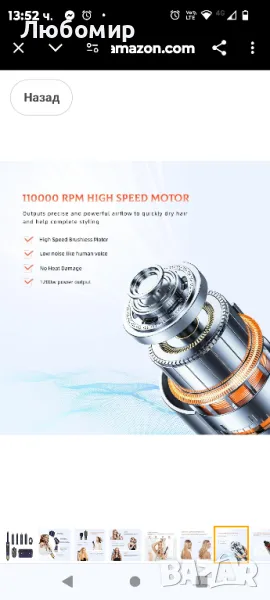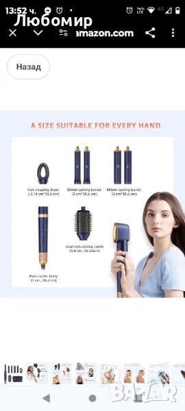 Четка за сешоар, 1300w.Система за въздушно оформяне и изсушаване, мощен йонен сешоар 6 в 1 и мултистайлер с автоматични въздушни маши, овална четка за обем .Подобрената версия на комплекта с преса включва 4 сменяеми дюзи за къдрене, 1 гребен за обем, 1 глава за сешоар и 4 щипки за коса.Комплект пръчици за въздушно къдрене 6 в 1 и високоскоростен безчетков мотор: Този многофункционален инструмент за оформяне има високоскоростен безчетков мотор, който може да достигне до 110 000 RPM, генерира силен въздушен поток, силен вятър и изсъхва бързо, и е няколко пъти по-голям от общи инструменти за стилизиране. Не са ви необходими никакви умения, просто пъхнете леко косата си в цилиндъра за коса, след това натиснете бутона и я оформете за кратък период от време, за да получите очарователна къдрава коса за автоматични къдрици, като вълни, спирални къдрици, къдрици.Нисък шум и интелигентен постоянен контрол на температурата: Автоматичната въздушна машина за къдрене ефективно завършва стила на салона с нисък шум, а дизайнът на тънката дръжка е по-удобен и удобен за използване. Тази многофункционална машина за коса с интелигентна настройка за регулиране на топлината, която автоматично настройва стабилна температура и използва процес на керамично покритие за ефективно изглаждане на статичното накъдряне, получете луксозна салонна грижа за косата за обем и блясък без увреждане от топлина.Сешоарът освобождава хиляди въздушни потоци от отрицателни йони, за да се грижи за косата ви по време на сушене. Загрява бързо и може да освобождава отрицателни йони на 360°, минимизирайки къдриците и статичното електричество, намалявайки щетите и по-добре кондиционира косата; Покритието разпределя равномерно топлината, бързо прониква в косъма и ускорява изсушаването отвътре навън, като ви помага да създадете гладка и блестяща прическа. Това ще ви помогне да поддържате красиви и меки вълнисти къдрици през целия ден.LED температурен индикатор и за множество прически: Снабден с ултра-дълъг въртящ се кабел, ще има LED светлини, показващи син/оранжев/червен цвят, показващ съответно помещението/топлия/топъл въздух. Комбинира цилиндър за маша, гребен за маша и сешоар, като същевременно прави косата мека и намалява увреждането от топлина. Подходящи за всички възрастови групи и различни типове коса, сешоарите могат бързо да създадат усещане за пухкавост в корените, гъсти къдрици и вълнообразни краища, създавайки желаната от вас прическа, като същевременно имате винаги добро настроение.
