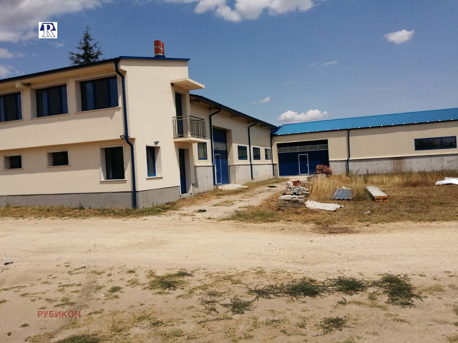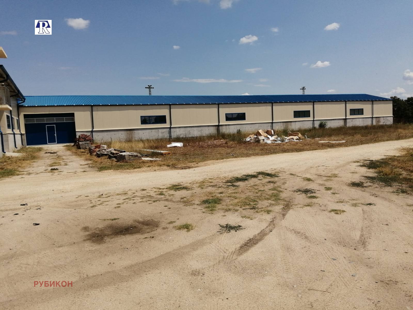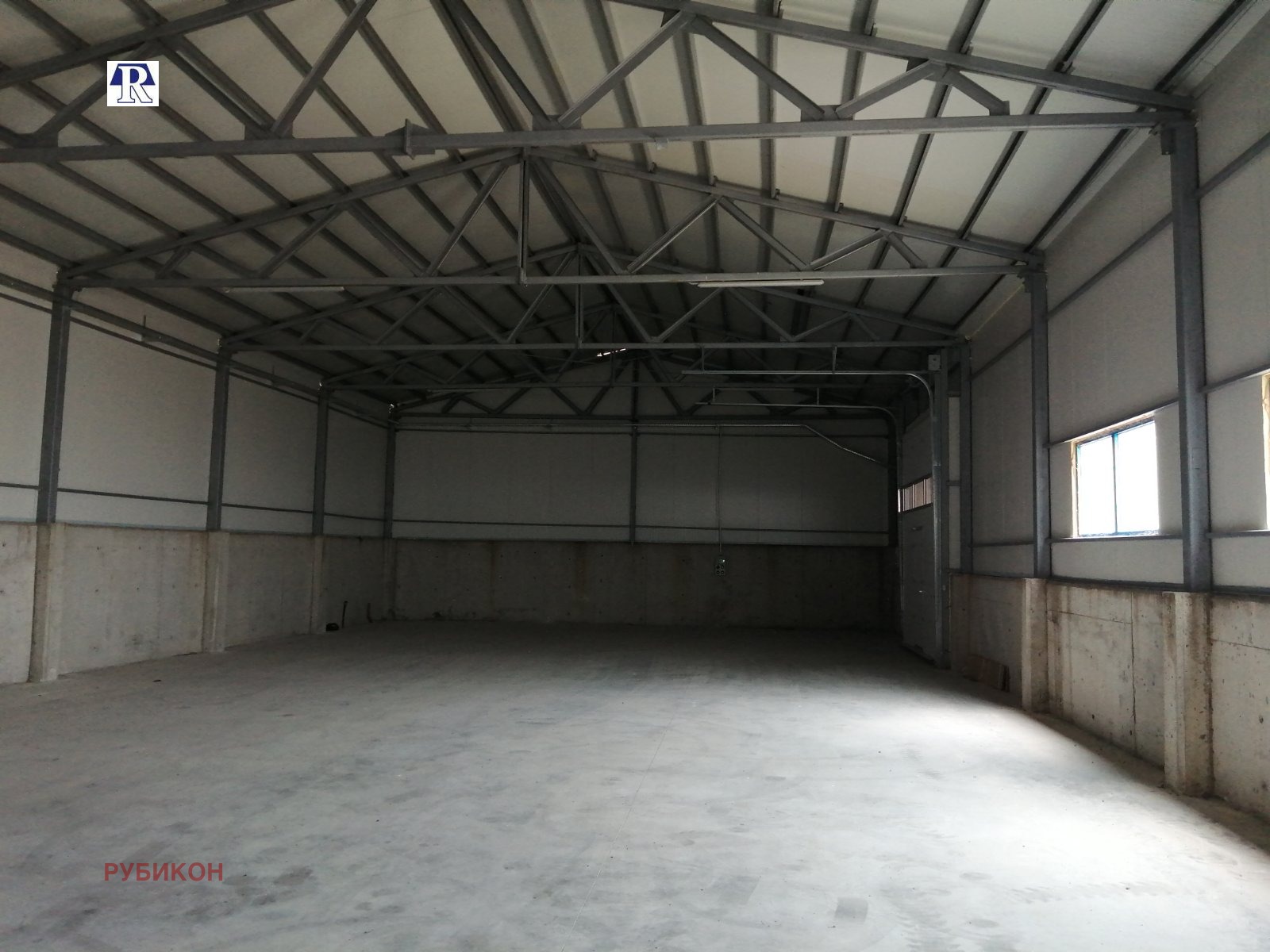 -60м х 12м х 4м. Има рампа за товарене на камиони. Към него има и административна сграда на два етажа с офиси, съблекалня и санитарни помещения.