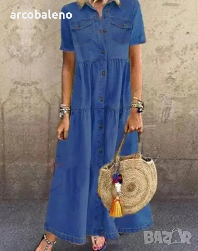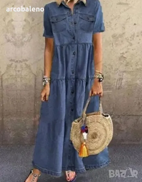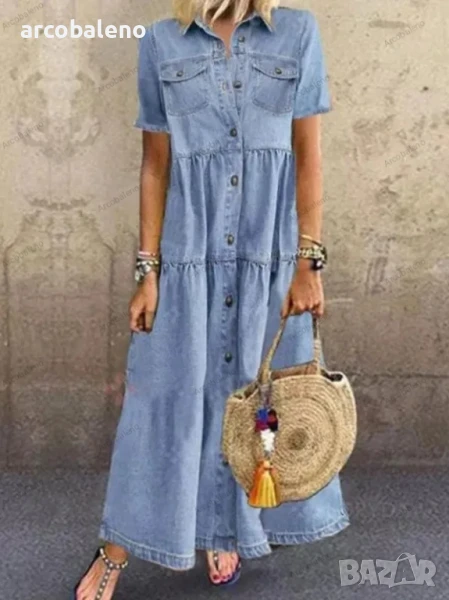 Дамска дълга дънкова изтъркана рокля с много копчета, 3цвята