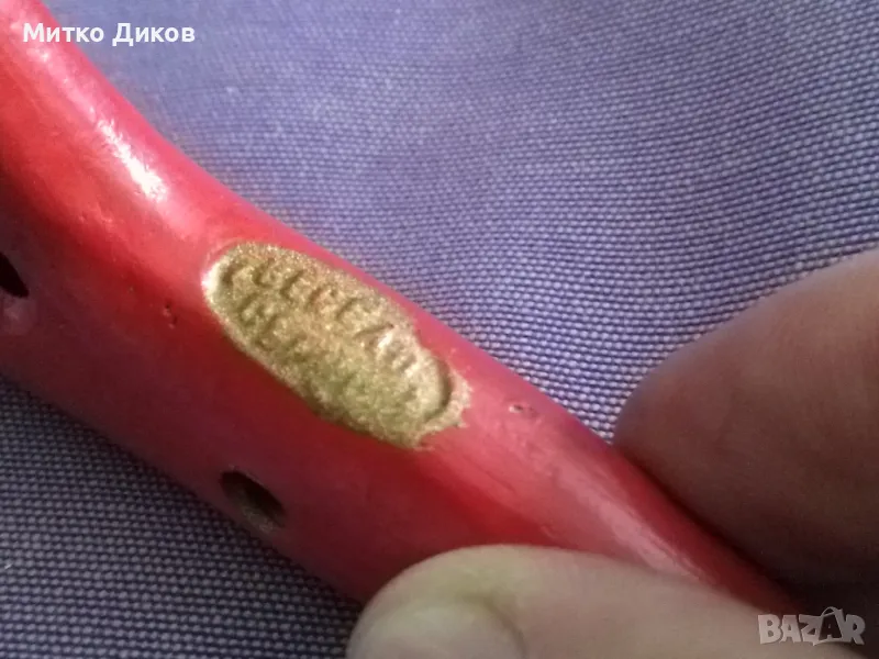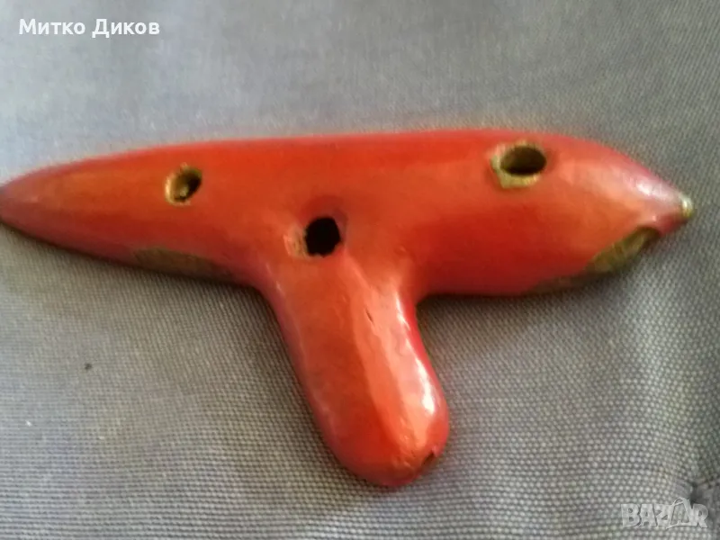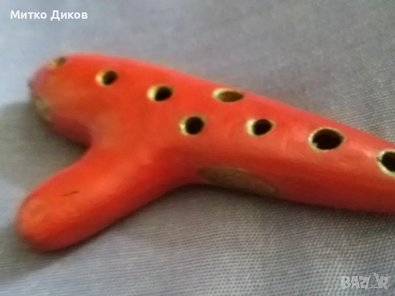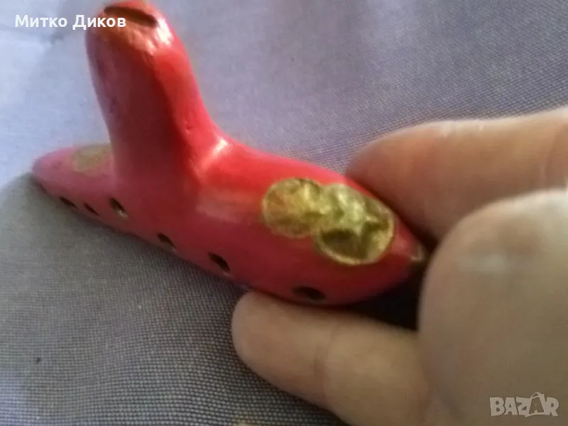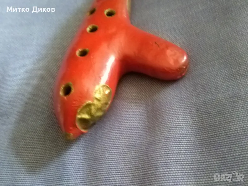 Стара керамична окарина винтидж от соца маркирана две звезди и надпис Весело сърце 125х55мм → Обява 46867010