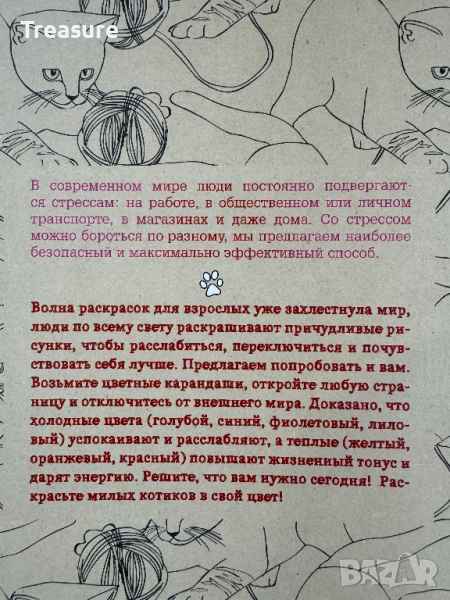 Кототерапия - Раскраска-Антистресс для взрослых → Обява 46867270