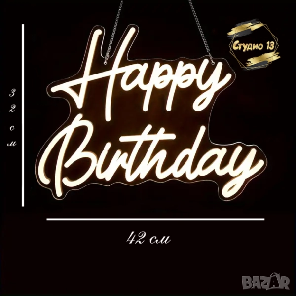 Неонов светещ надпис Happy Birthday → Обява 46868353
