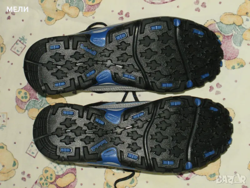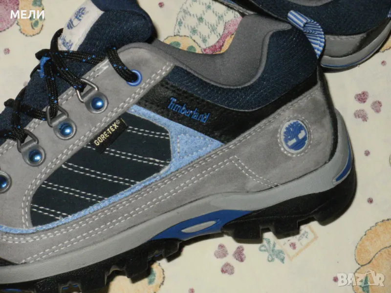 Маратонките са на TIMBERLAND-GORE-TEX(не пропускат вода и влага), оригинални, обувани веднъж като нови. Подходящи за момче, цветовете са черно, сиво и синьо. Материалите по голямата част са естествен набук. По номер са 37,5 дължина на стелката-23см. Стават за планината и за града.