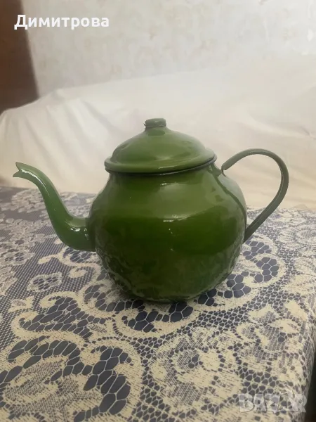 Емайлиран чайник от соц- а - зелен - 25 лв. / 12.78 €. Снимка 2.