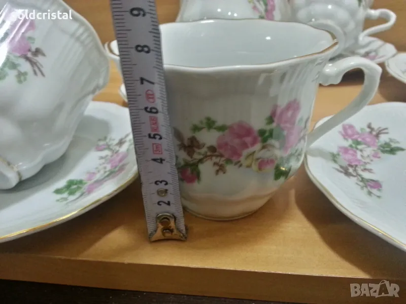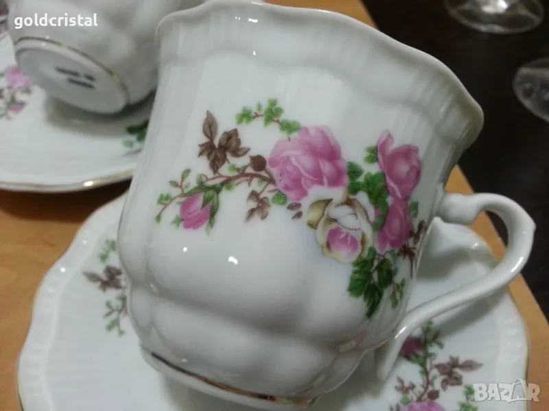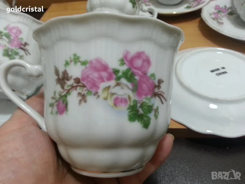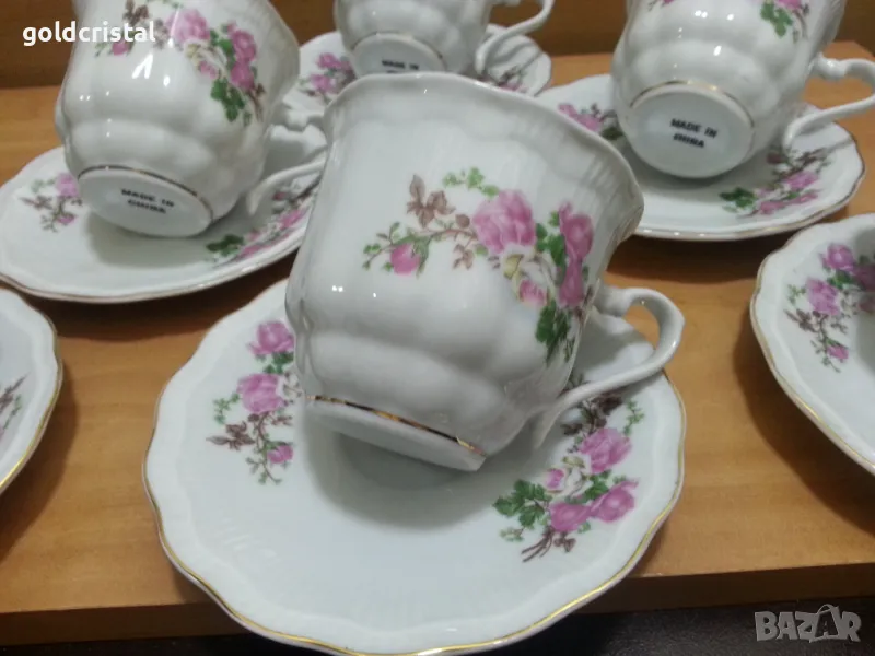 Старинен фин китайски порцелан чаши за чай 6 броя чаши и 6 бр чинийки без забележки плътен златен кант сервиз комплект сет лот ретро арт декор винтидж колекция стари старинни антикварни предмети обзавеждане за дома и семейството подходящи за подарък за ценители и колекционери