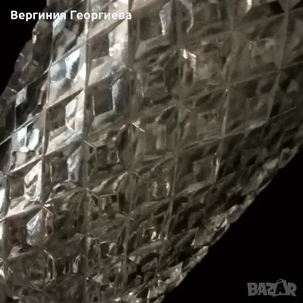 Красива и много масивна ваза. Знам, че е чешка, но не съм сигурна дали е кристал или специално стъкло. Височина - 24 см, диаметър - 16 см, дъно - 10 см. Предпочитам лично предаване за Варна.