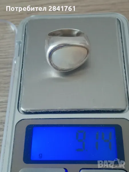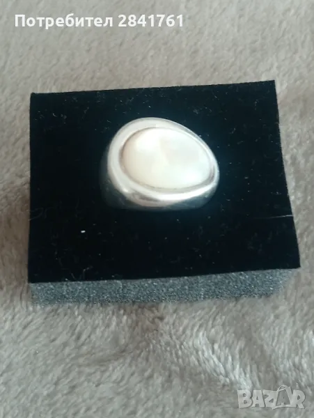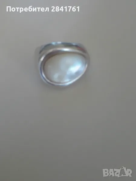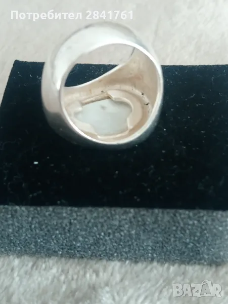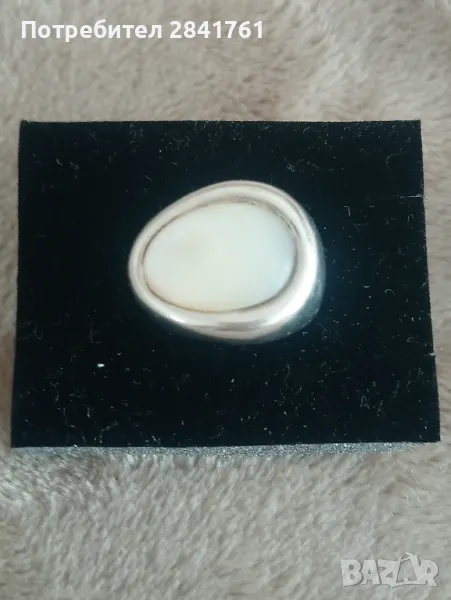 Изискан сребърен пръстен със седеф. Масивна изработка, тежи 9.14 грама, размер 17.5 мм, има видим печат за сребро 925