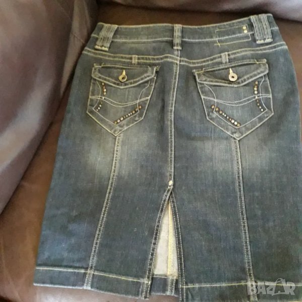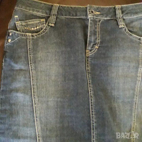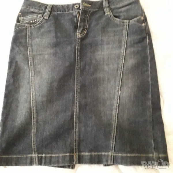Дамска дънкова пола 'Esprit'. Обиколка на талията - 80 см, дължина 55 см. Тъмносиня на цвят. Носена е малко. Без дефекти и петна.