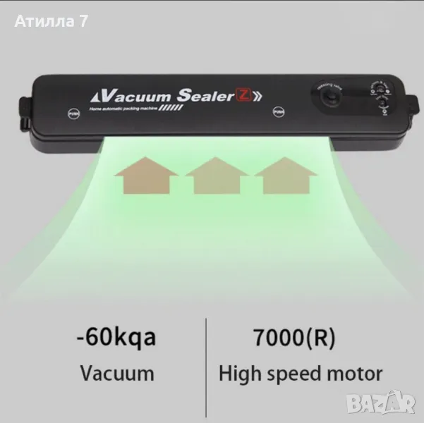 Машината за вакуумиране е изработена от висококачествена ABS пластмаса, с двоен режим, което я прави подходяща за сухи и влажни храни като месо, риба, зеленчуци, а също и за суха храна като сушени ядки, сушени плодове и т.н. Тази