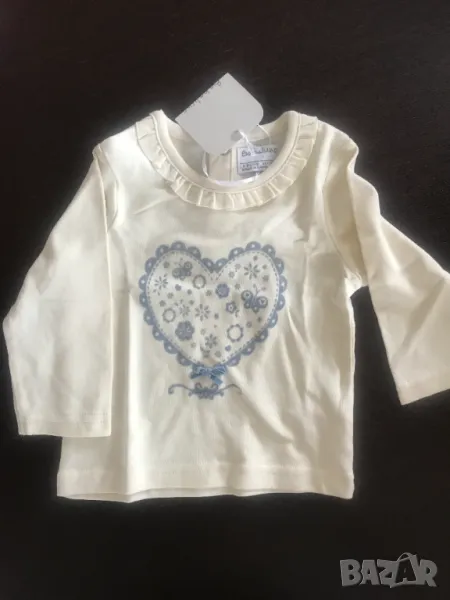 4/ Bubulino - памучна блузка с дълъг ръкав, млечно бяла със сиво сърчице и малка панделка в основата му. Размер 6-9 месеца. - 5 евро.