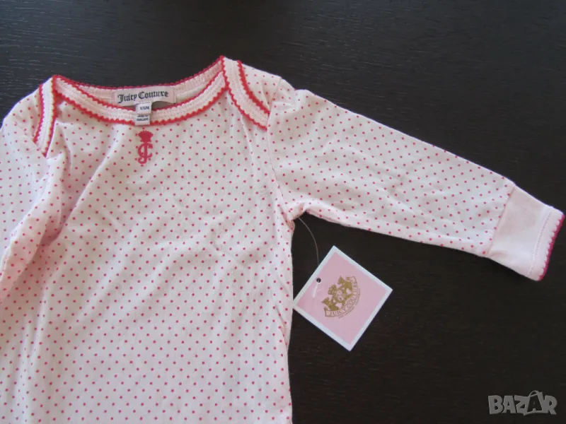 5/ Juicy Couture - боди с дълъг ръкав на точки, с червен кант около вратлето и ръкавчетата. Размер 3-6 месеца. - 8 евро