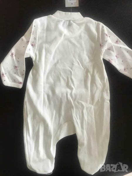 3/ Гащеризонче Гае - размер 1-3 месеца. Памук, предно закопчаване с набор около копчетата, с картинка зайчета и ръкави на нежни цветчета. - 5 евро