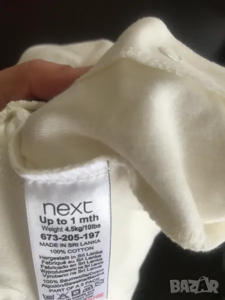 1/ Гащеризонче Next Disney - Мечо Пух с балон - размер 0-1 месец - 100% памук, млечно бяло, с вградени ръкавички, набор по линията на копченцата. - 12 евро