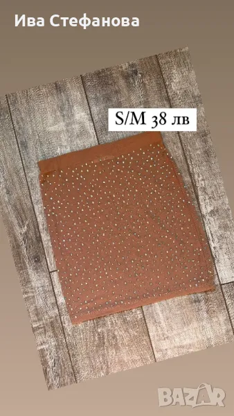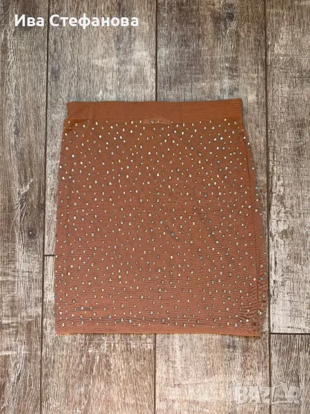 Нова парти коктейлна официална еластична пола с камъни телесен бежов цвят → Обява 46875612