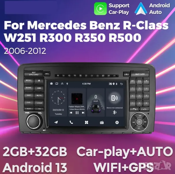 Мултимедия, за Mercedes R-class, R300, R350, W251, Навигация, плеър, двоен дин, Android, Мерцедес R
