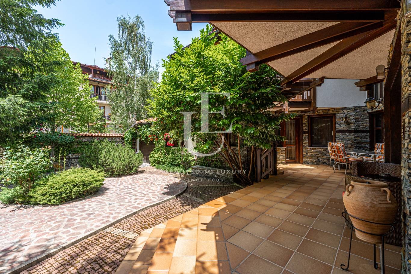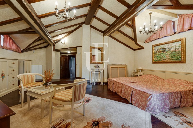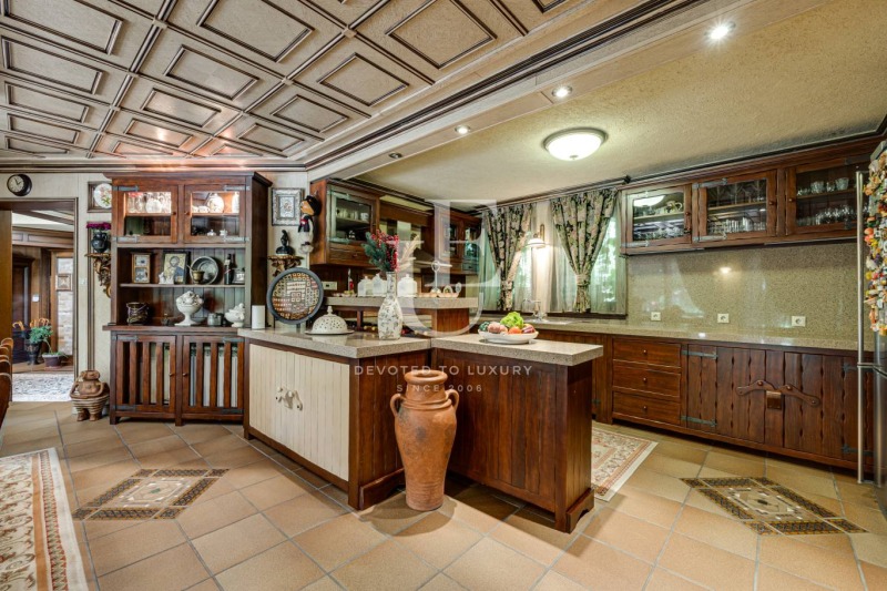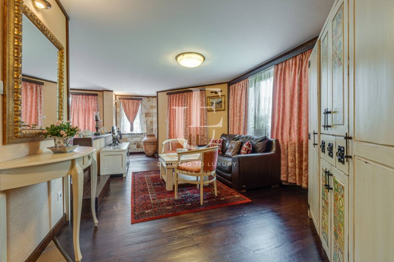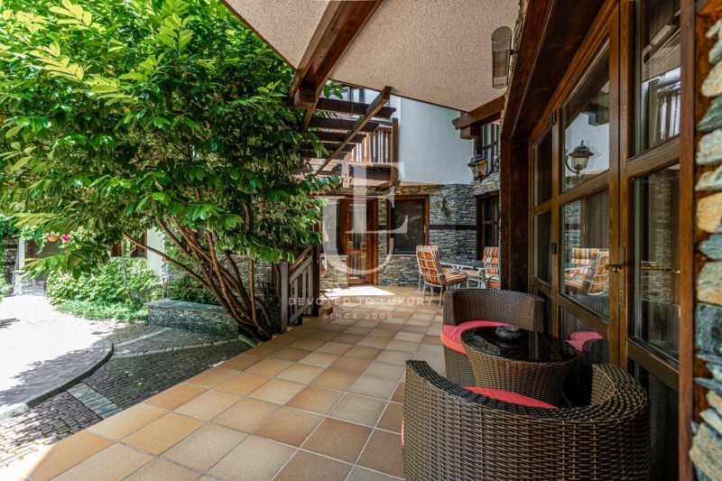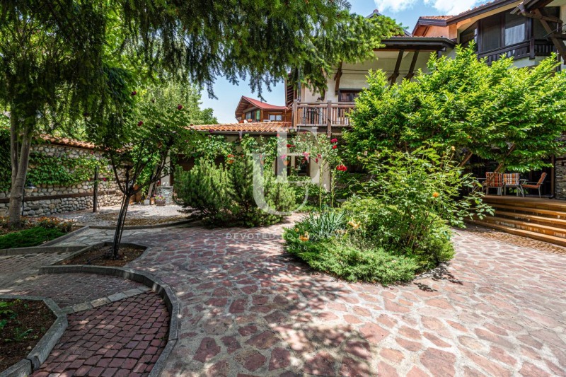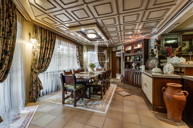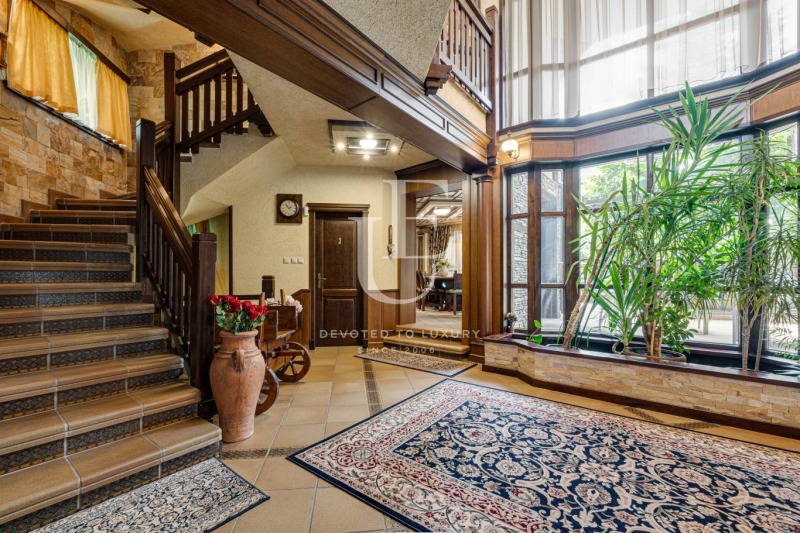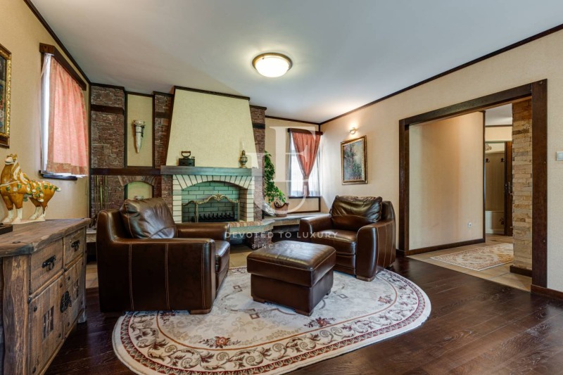 Имотът се предлага напълно обзаведен и в отлично състояние, съчетавайки уют, комфорт и функционалност. Вътрешното пространство впечатлява с просторен хол с камина, билярдна, механа, малък фитнес, сауна и релакс зона. Външното пространство предлага красиво озеленена градина и веранда с барбекю зона, създаващи усещане за зелен оазис.