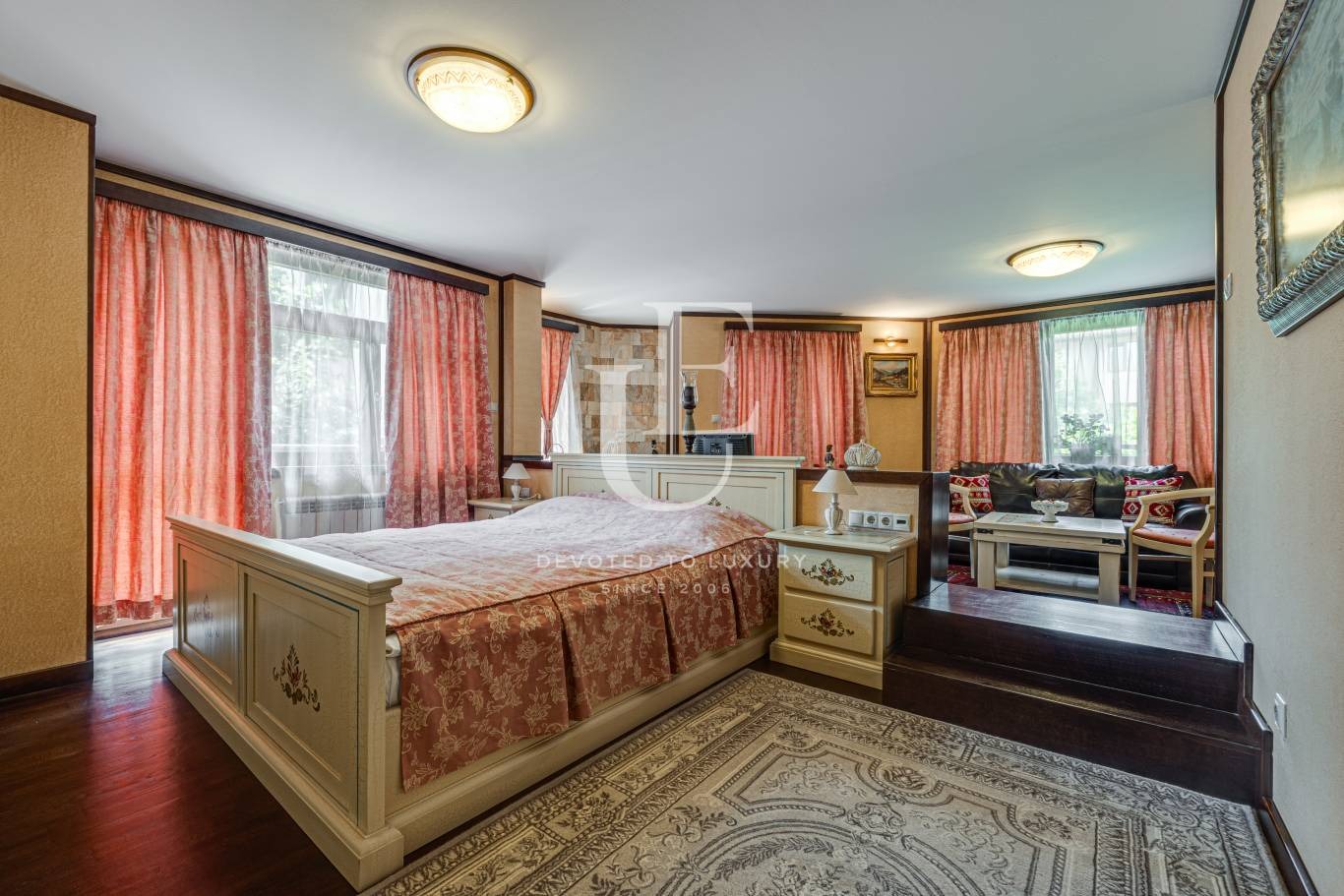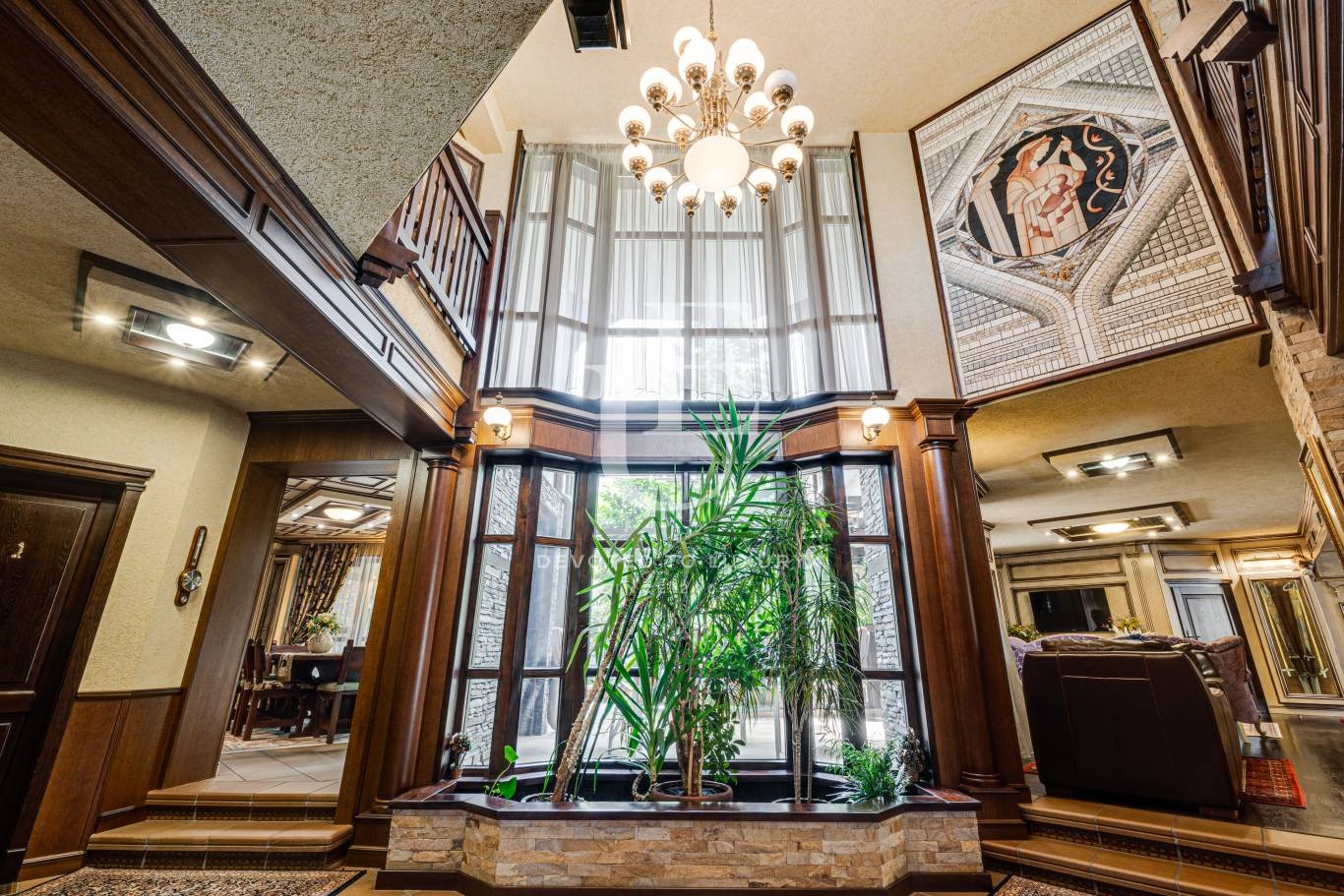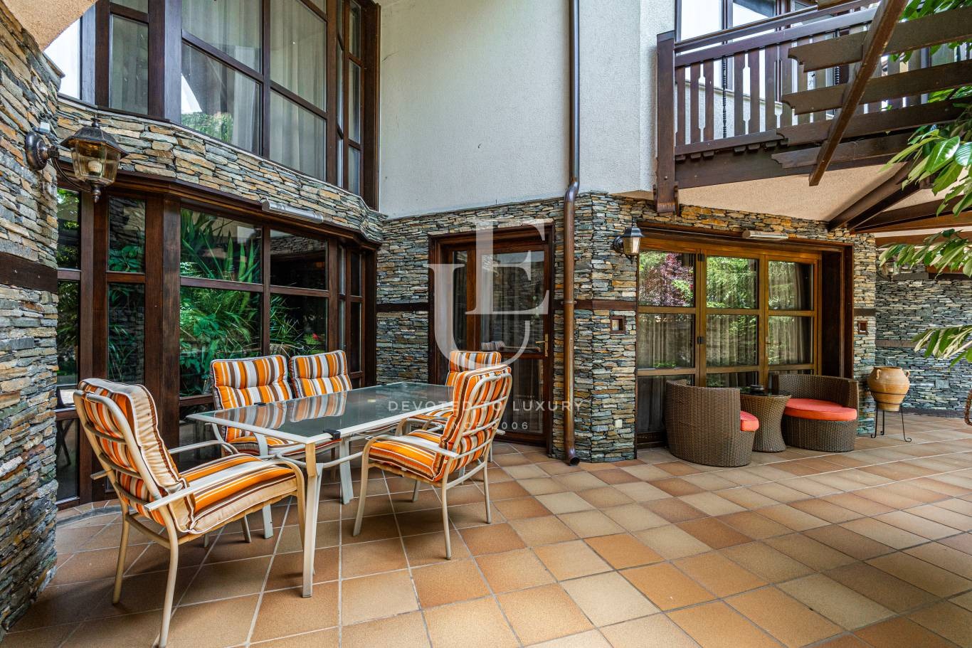 Имотът се предлага напълно обзаведен и в отлично състояние, съчетавайки уют, комфорт и функционалност. Вътрешното пространство впечатлява с просторен хол с камина, билярдна, механа, малък фитнес, сауна и релакс зона. Външното пространство предлага красиво озеленена градина и веранда с барбекю зона, създаващи усещане за зелен оазис.