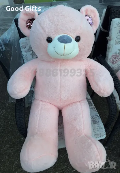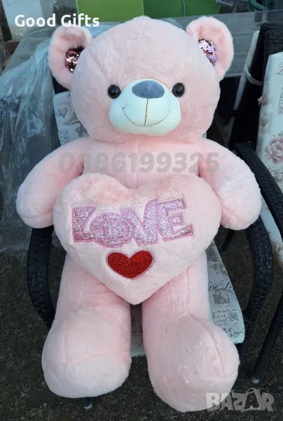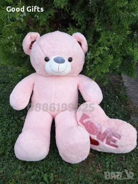 Голямо плюшено Мече, Розово 100см + Подарък плюшена възглавница Сърце Love → Обява 46876868