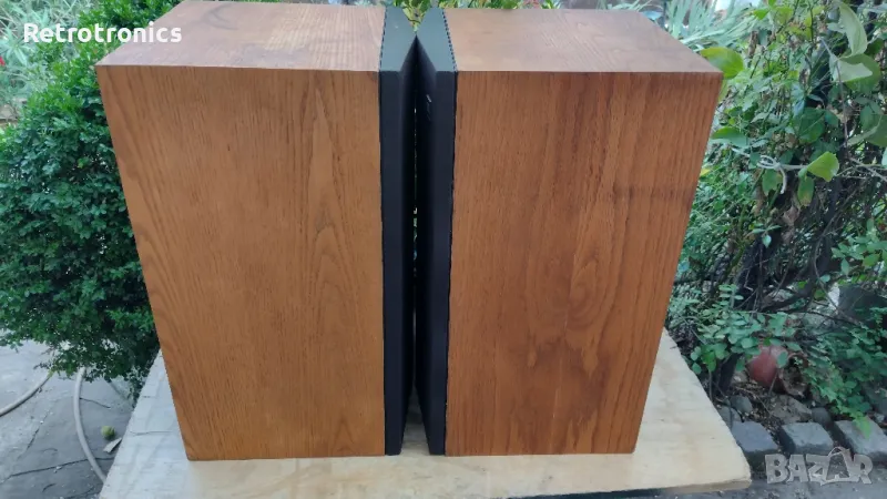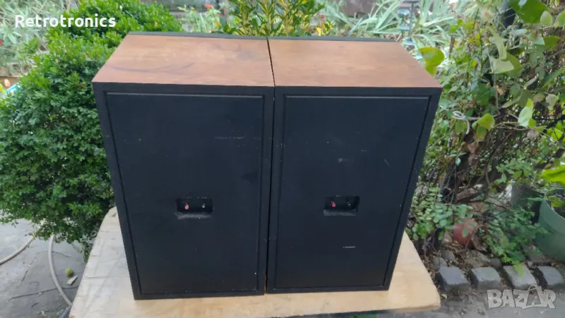 50 вата при 8 ома с 10-инчови нискочестотни високоговорители. Кутии от тежко орехово дърво с чудесна текстура и цвят.