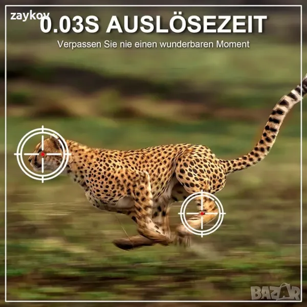 【Светкавично бързо време на задействане от 0,05 секунди】Нашата камера за диви животни е бърза 0,05 секунди за първото време на освобождаване на затвора, така че никога да не пропускате нито един момент. Можете да избирате между три интервала на запис (5 секунди, 10 секунди, 15 секунди), за да заснемете бързо, точно и надеждно най-бързо движещите се обекти. Той е идеалният спътник на лов.