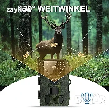 Широк обхват на засичане от 130°: Нашата камера предлага широк ъгъл на засичане от 130°, което му позволява да улови още повече действие. Модулът за откриване на движение може да засече движение от разстояние до 30 метра, а неярките светодиоди осигуряват достатъчно осветление в тази зона. Тази мощна комбинация позволява на камерата да прави ясни снимки и видеоклипове на големи разстояния, което е идеално за пълно наблюдение.