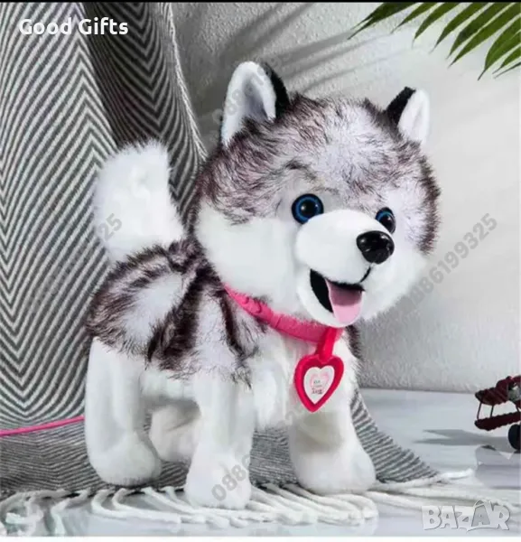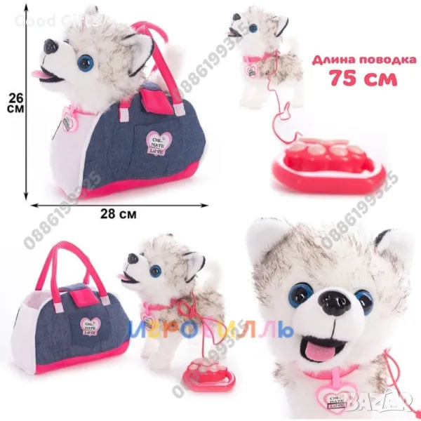 Интерактивно плюшено ходещо Куче Хъски с повод и чанта → Обява 46877524