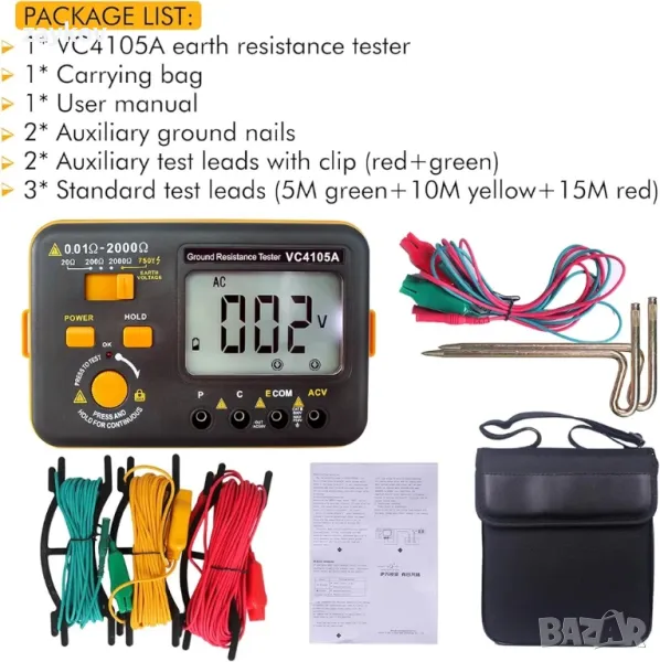 Комбинирайки точни измервания, преносим дизайн, удобни функции, издръжливост и подобрени функционалности, измервателят за устойчивост на почвата VC4105A се откроява като надежден и универсален инструмент за професионалисти в различни индустрии.