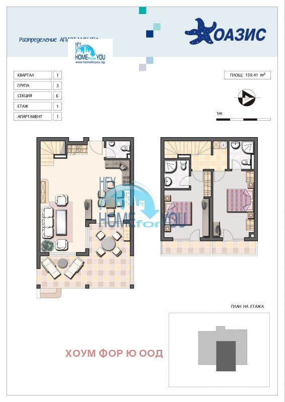 Предлагаме Ви уникален тристаен апартамент на две нива (1-ви и 2-ри етаж), разположен на първа линия море.
