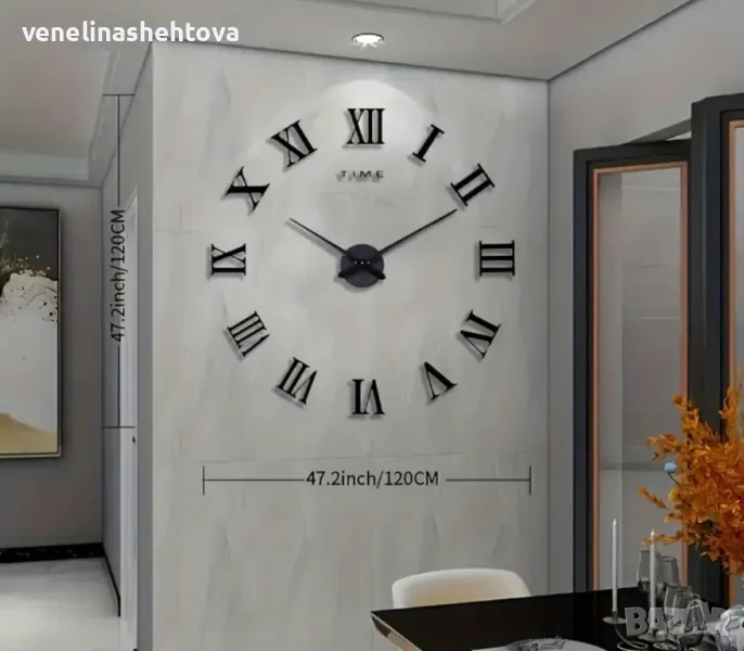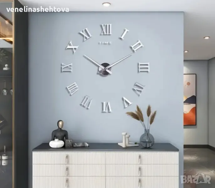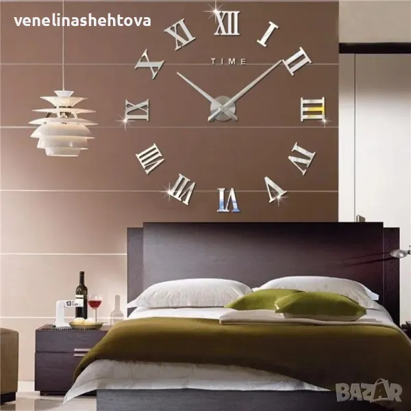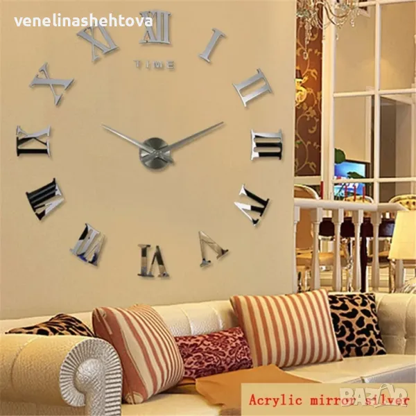 3D Големи огледални стенни часовници римски цифри