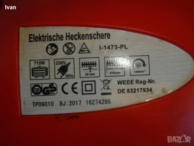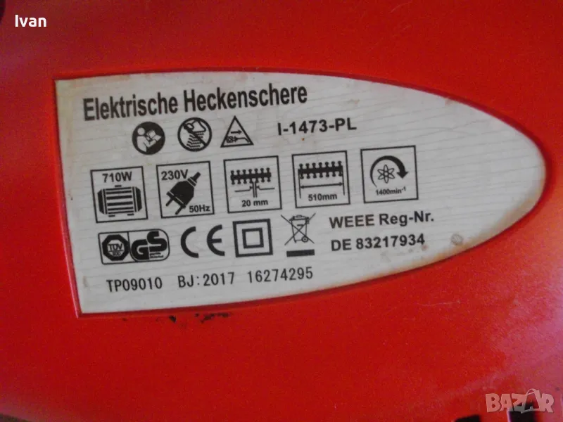 Голям електрически храсторез 710 вата/20 мм стъпка рязане/ 110 см/ Като нов Немски Реже трева/храсти