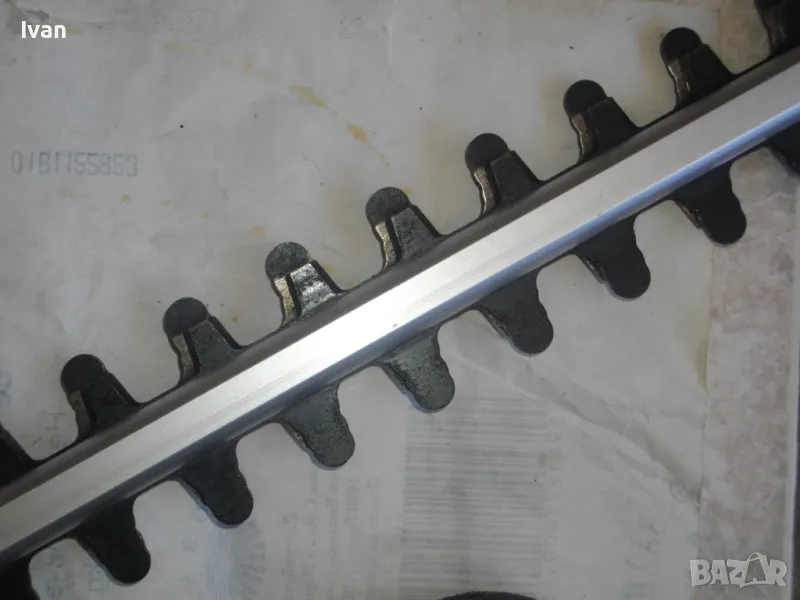 Цялостна дължина на мшината - 110 см, дължина шина - 510 см, 2 ножа режещи чрез застъпване, алуминиева шина над тях, 17 двойки зъби, много добре фабрично заточени. Стъпка между зъбите - 20 мм - машината реже клонаци, треви, храсталаци с диаметър до 20 мм 8 2 см. Брой зъби - 17 двойки, остриета като нови - режат добре.