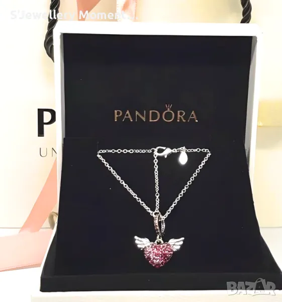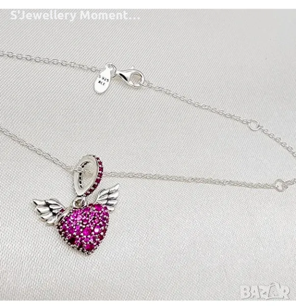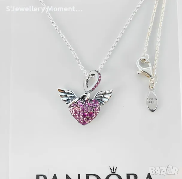 Сребърно колие 925 модел Pandora Pavé Heart Angel Wings Necklace → Обява 46881790