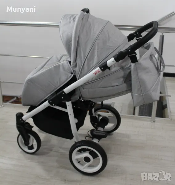 Амортисьори на всички колела,с възможност за регулиране на твърдостта на возене, осигуряващи комфорт за бебето.