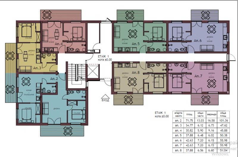 Цена при предаване в горния вид 1200 евро на кв.м