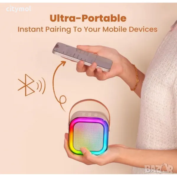 Страхотна Bluetooth караоке колонка за слушане на музика и караоке. Модерен дизайн и кристален звук.