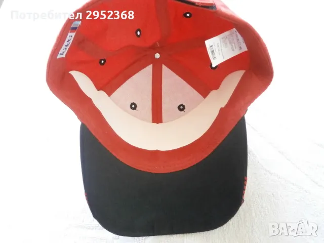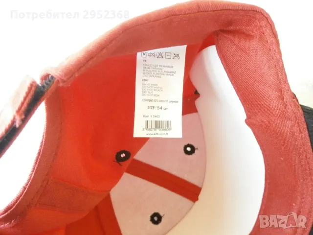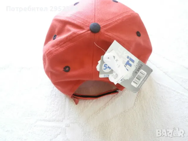Нова юношеска шапка с козирка с наситен червен цвят.Размер 54см. и състав 83% памук и 17%полиестер.Може да се регулира отзад.Цената не се коментира.