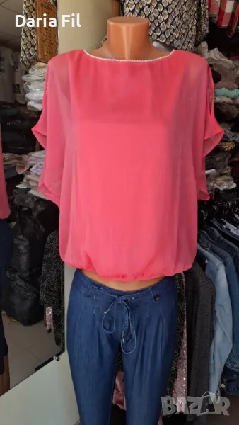 ИЗКЛЮЧИТЕЛНО КРАСИВА риза в цвят корал с перлички по деколтето → Обява 46884492