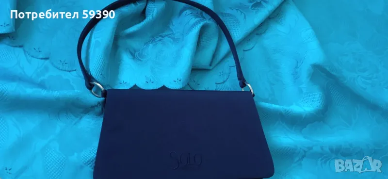 Неупотребявана тъмно синя елегантна трапецовидна чантичка от Италия. "Solo Soprani"Размер без дръжка: дължина:23 долна част,горна:20,5 см. Височина:13 см.Височина с дръжка:31 см. Цена:90 лева. За София може на лично предаване.